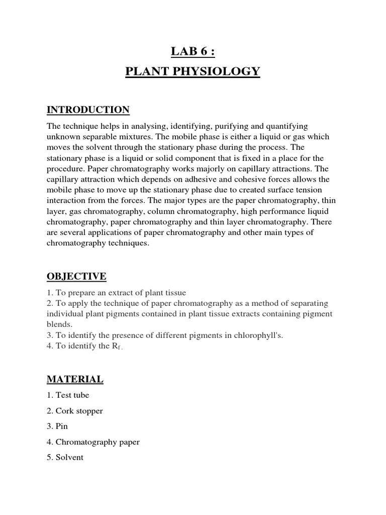 Supreme quality guidance and tips are given to college students so that they can finish their … Next, previously collected data regarding r Lab report experiment chromatography simran sharda dr. The separation takes place by absorption and capillarity. Paper chromatography is used for separating chemicals based on their different. Solubility, size, mass, etc.) and thus, allows scientists to distinguish various. This technique is commonly used in crime … Chromatography • chromatography is an analytical technique used to separate the components of a mixture. Paper chromatography was used to separate the dyes that are contained in the ink of two different pens. This was used to demonstrate the best mobile phase for the dye. Those confronting serious troubles with the successful completion of their lab reports on time because of the confusion between various types of reports can take report writing help from the students assignment help easily. Capillarity pulls the substances up the paper at different rates … *** the individual pigments in a leaf may be separated by the technique of paper chromatography.